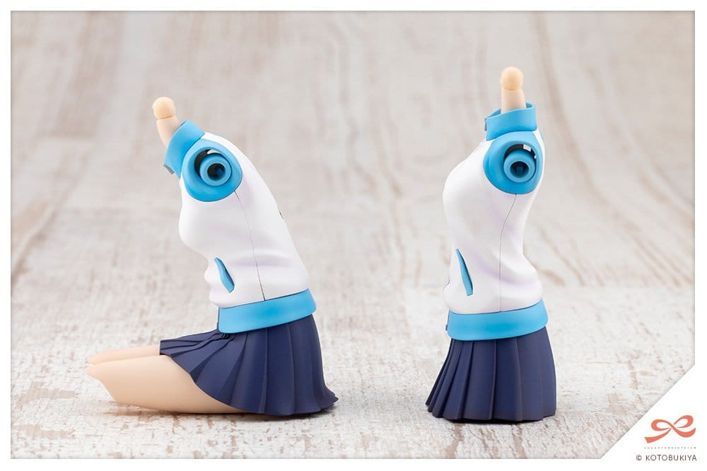 The body features thigh rotation joints and double-jointed knees, making it ideal for action poses. When combined with the forward-leaning upper body and full-face helmet, a complete riding configuration can be assembled. Both the school uniform body and riding body can be enjoyed in one set.