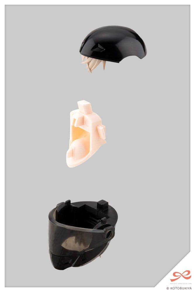An essential option for riders, the helmet features a smoky-black visor that can be opened and closed. The interior is fully sculpted, including Rui's bangs and hair behind her ears.