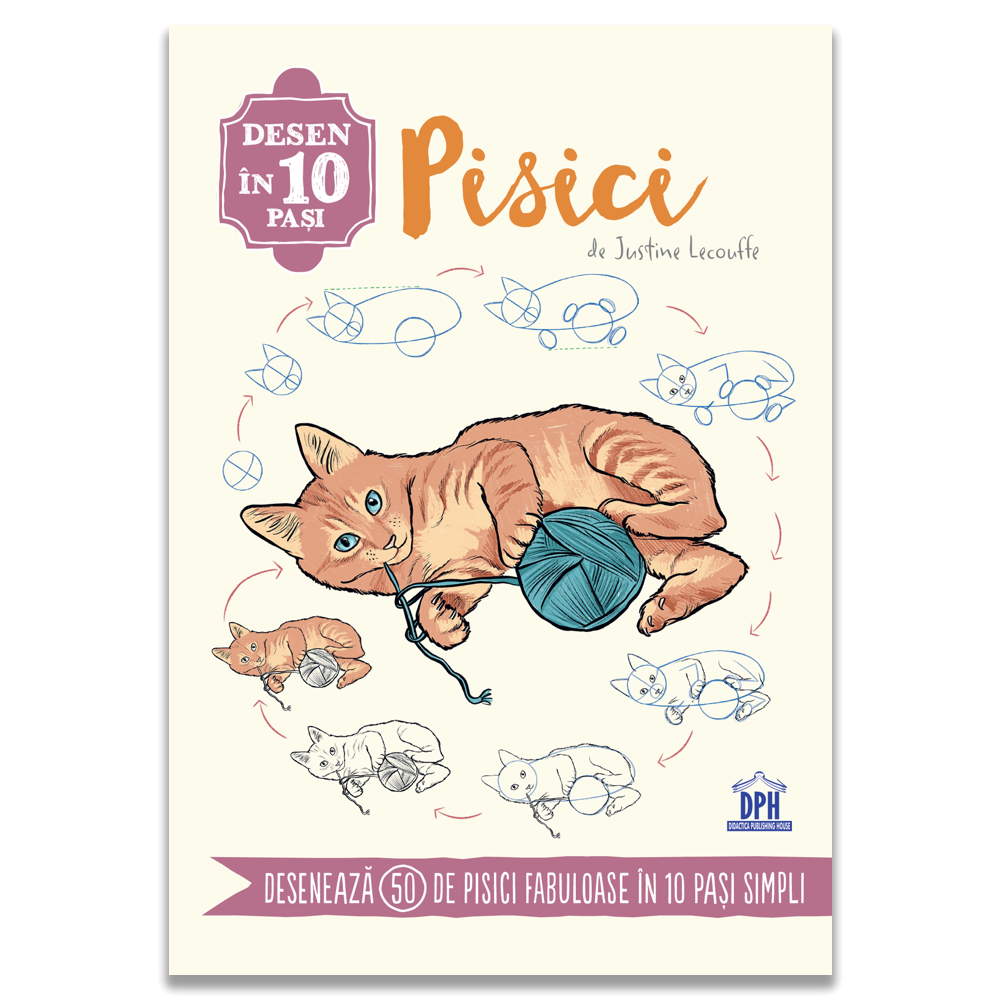 Desen in 10 pasi: Pisici de Justine Lecouffe este un ghid creativ dedicat tuturor iubitorilor de feline care vor sa invete sa deseneze simplu si corect. Cartea propune o metoda clara, structurata in 10 pasi progresivi, care transforma desenul intr-o activitate accesibila si relaxanta pentru copii, adolescenti si adulti.