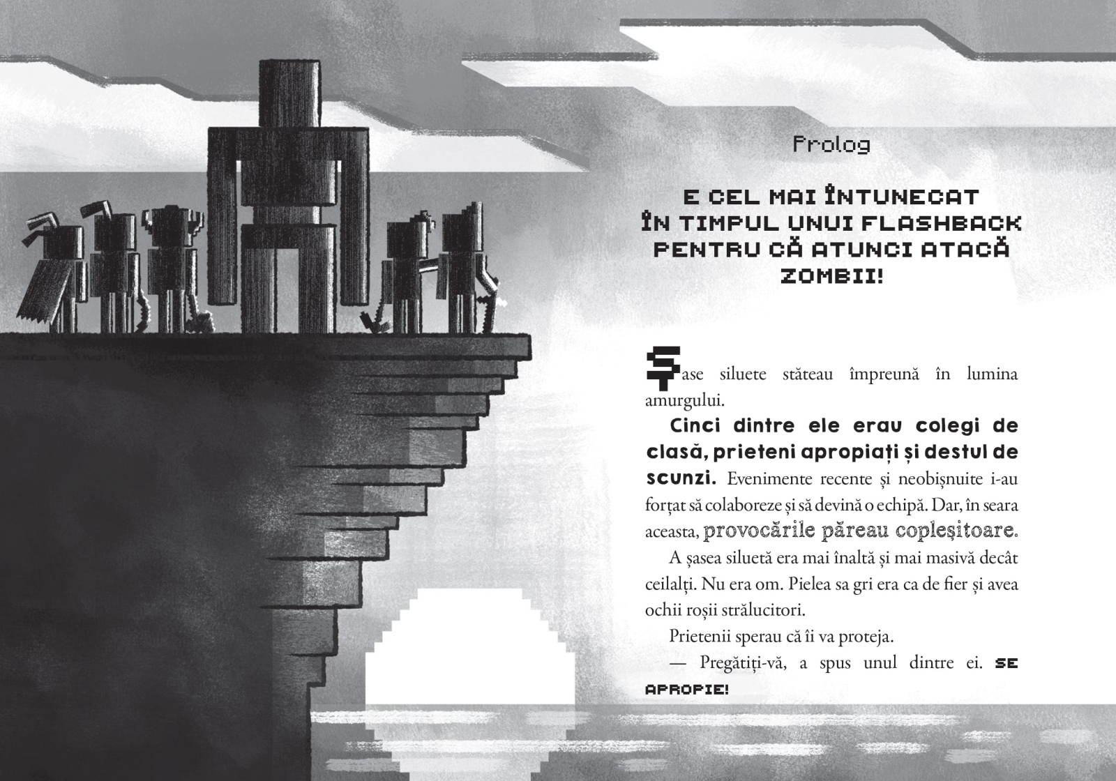 Povestea imbina actiunea alerta cu momente de umor si lectii valoroase despre incredere si lucru in echipa. Elementele specifice Minecraft, precum mobi, satul virtual si provocarile de supravietuire, fac lectura captivanta pentru fanii jocului. Stilul dinamic si ilustratiile expresive transforma cartea intr-o experienta antrenanta, ideala pentru lectura independenta.