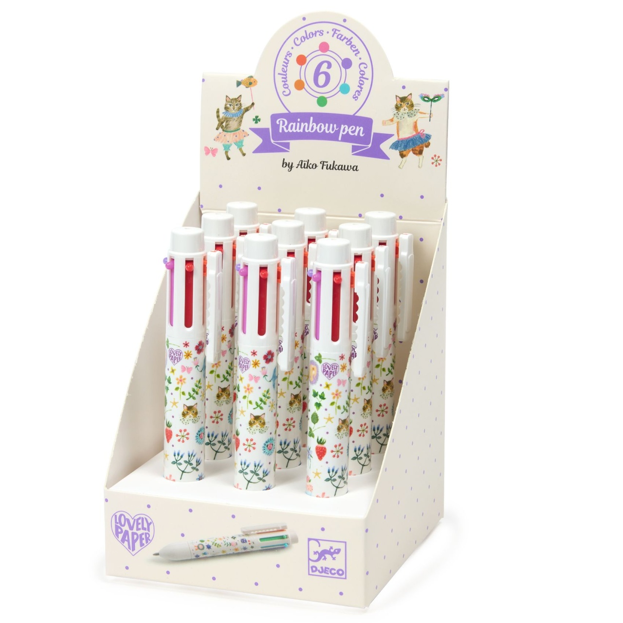 Pix multicolor Aiko Pix cu 6 culori și ilustrații florale. Foarte util pentru a-ți nota toate ideile în culori vibrante! Prindere confortabilă, vârf retractabil, clip de agățat. Conținut: pix cu gel cu 6 culori (roșu, roz, violet, albastru, verde, portocaliu). Dimensiunea pixului : 12 x 1.5 cm. Articol papetarie. Nu este jucarie. Contraindicat copiilor sub 3 ani. Producător: Djeco, Franța.