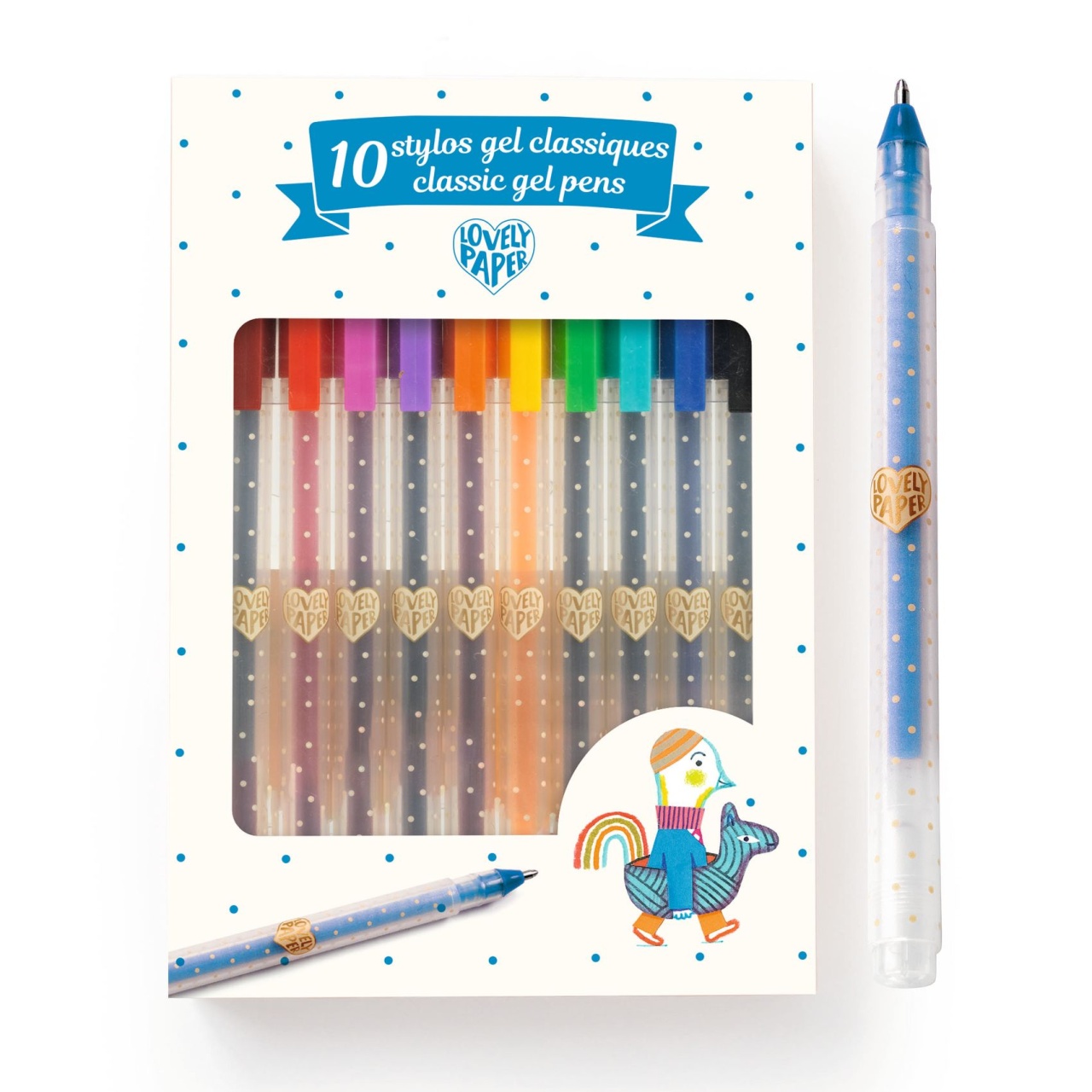 Set roll-gel Un set de 10 pixuri gel în culori clasice, într-o cutie transparentă, ideale pentru a vă îmbunătăți creațiile! Corp translucid pentru a vedea nivelul de cerneală. Fluxul lin al cernelii gel asigură o scriere clară și precisă. Culoarea capacului este aceeași cu culoarea cernelii pentru o identificare ușoară. Include: 10 pixuri cu gel (maro, roșu, roz, violet, portocaliu, galben, verde, turcoaz, albastru și negru). Vârsta recomandată: +6 ani. AVERTISMENT! Articol papetărie. Nu este jucărie. Contraindicat copiilor sub 3 ani. A se folosi sub directa supraveghere a unei persoane adulte. Producător: Djeco, Franța