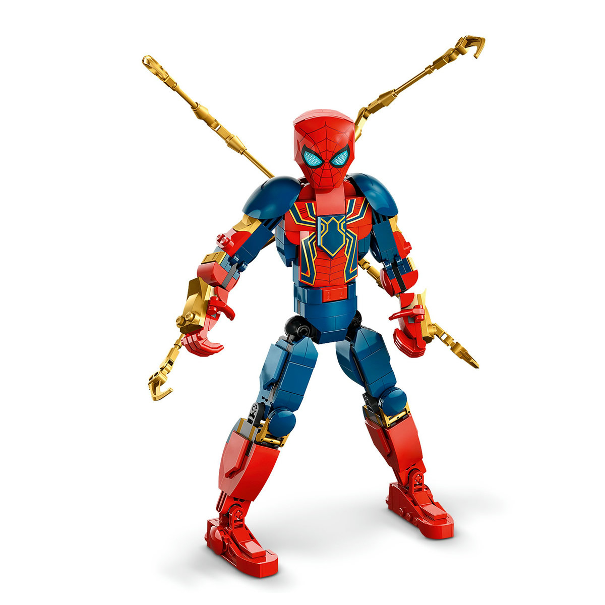 Figurina supererou masoara 27 cm în înaltime si are articulatii mobile ale umerilor, bratelor, soldurilor si picioarelor, care permit copiilor sa interpreteze pe roluri aventuri dinamice. Îmbracata în armura de înalta tehnologie a Omului Paianjen de fier creata de Tony Stark, figurina include 4 brate suplimentare, de asemenea complet articulate. Pentru mai multa distractie digitala, constructorii pot apropia si roti seturile în 3D si-si pot monitoriza progresul folosind aplicatia atractiva si intuitiva LEGO Builder.
