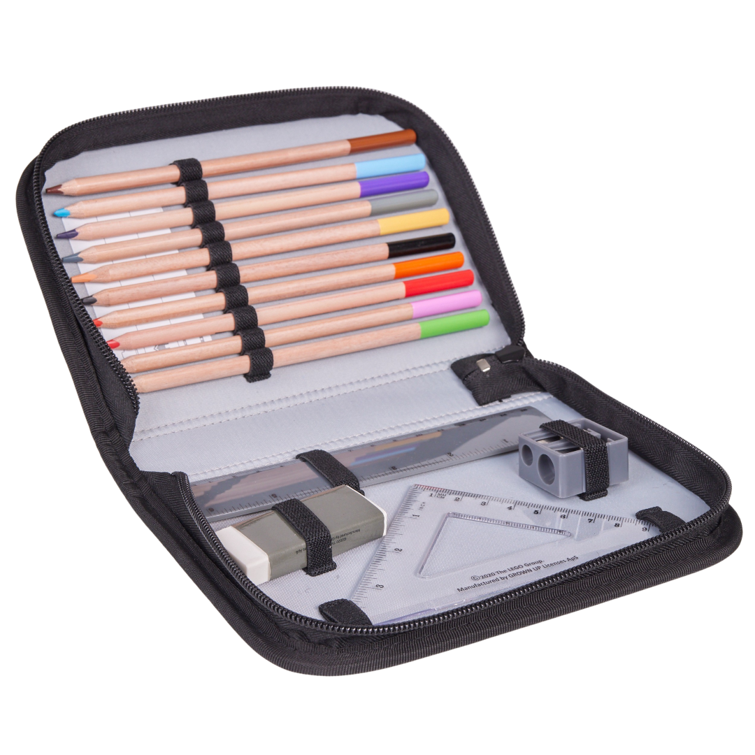Conine: 10 creioane colorate, radieră, ascuitoare, riglă ţi echer