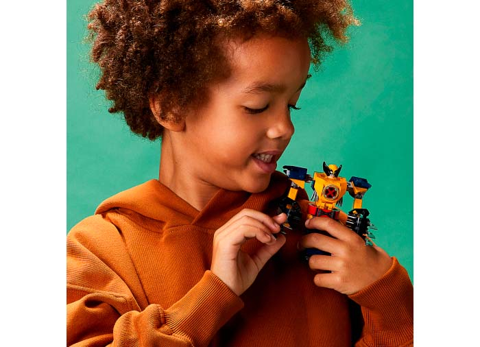 Copiii duc joaca creativă pe noi culmi când pun minifigurina Wolverine în carlinga uriaşului robot Wolverine. Robotul super-erou are braţe şi picioare mobile, şi gheare uriaşe alungite, ataşate la mâinile sale puternice. Fanii filmelor Marvel pot recrea scenele preferate din film, pot duce lupte epice cu alţi roboţi din colecţia lor şi pot juca propriile aventuri imaginative fără sfârşit. Iar când acţiunea se termină, formidabilul robot Wolverine arată grozav expus în camerele copiilor.