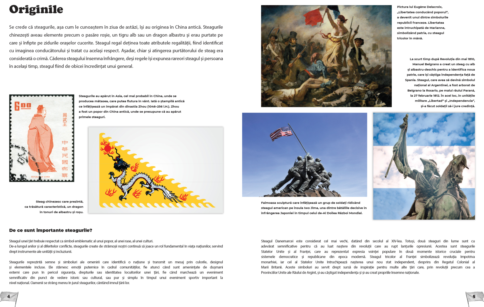 Steagurile lumii este o carte interactiva care transforma invatarea geografiei intr-o activitate captivanta si practica. Copiii descopera tarile si steagurile lor prin lipirea a peste 200 de autocolante pe hartile fiecarui continent, identificand statele recunoscute de Organizatia Natiunilor Unite si pozitia lor pe harta.