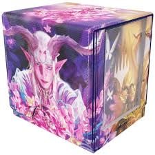 Un element unic al acestei cutii este Slide Card Case-ul detasabil, dotat cu protectie UV, perfect pentru afisarea cartii Commander sau a celei de top, pastrand-o complet protejata chiar si in timpul jocului. In plus, un sertar ascuns integrat ofera loc pentru token-uri, zaruri sau accesorii esentiale. Inchiderea magnetica puternica garanteaza siguranta continutului, chiar si in timpul transportului.