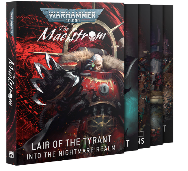 The Maelstrom: Lair of the Tyrant este urmatoarea mare extensie narativa pentru Warhammer 40,000, ducand jucatorii si cititorii in vartejul haotic al Maelstromului. In centrul povestii se afla Huron Blackheart si Red Corsairs, pregatiti pentru un nou raid devastator asupra spatiului Imperial. Totodata, Prince Yriel si Eldritch Raiders isi urmaresc propriile scopuri intr-o regiune blestemata, unde nimic nu este sigur.