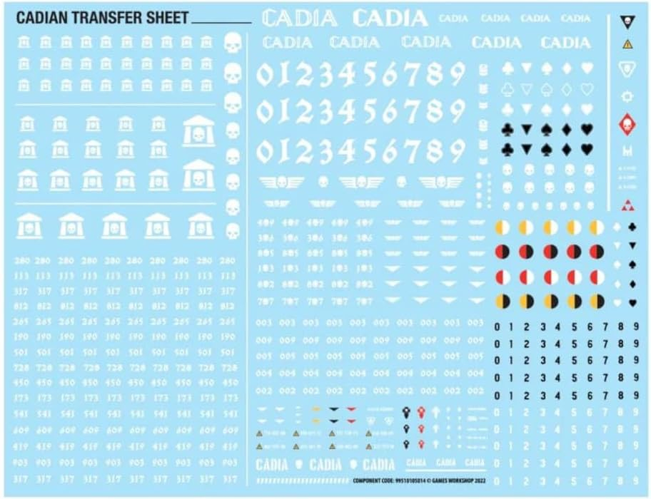 Setul contine 131 de componente din plastic, 10 baze Citadel rotunde de 25mm si o coala de transfer Cadian Infantry cu 597 simboluri si insemne regimentale. Miniaturile sunt livrate neasamblate si nepictate – pentru rezultate optime, se recomanda Citadel Plastic Glue si Citadel Colour paints.